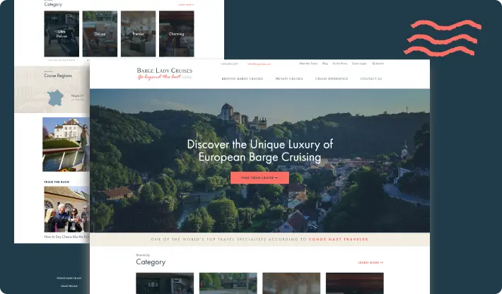 Barge Lady Cruises needed technical itineraries, better inquiry conversions, and to simplify the management of content. Storytelling and mobile usability were also poor, which diminished the interaction and reduced the overall bookings online.